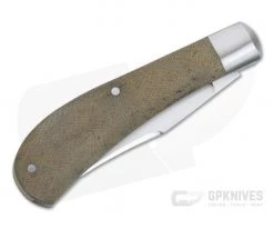 Handle: The traditional Trapper pattern is executed with brushed stainless steel liners alongside handmade canvas Micarta scales produced by GL Hansen giving it a unique rustic appearance. The back spring is equipped with a hand rubbed satin finish which also matches the steel shield on the front cover.