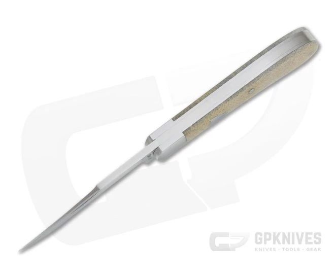 Blade: Premium CPM 154 stainless steel is finished with a beautiful, hand-rubbed satin finish and a subtle swedge tapering the clip point blade to a precision tip. CPM-154 delivers modern performance with a balance of edge retention, corrosion resistance, and toughness. The Wharncliffe profile and shallow hollow grind allow this knife to slice and pierce with optimal performance. A generous nail nick allows for easy opening of the blade on the smooth slip joint back spring, also made of CPM 154. Excellent walk and talk with a flush spine in all three positions.