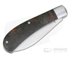 Handle: The traditional Trapper pattern is executed with brushed stainless steel liners, integral bolsters and visually stunning, crosscut rag Micarta which delivers a classy yet rugged look. The back spring is equipped with a hand rubbed satin finish which also matches the steel spear shield on the front cover.