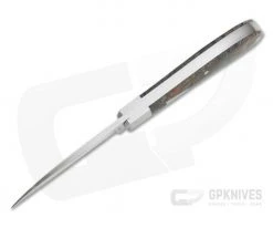 Blade: Premium CPM 154 stainless steel is finished with a beautiful, hand rubbed satin finish and a subtle swedge tapering the Wharncliffe blade to a precision tip. CPM-154 delivers modern performance with a balance of edge retention, corrosion resistance and toughness. The Wharncliffe profile and shallow hollow grind allows this knife to slice and pierce with optimal performance. A generous nail nick allows for easy opening of the blade on the smooth slip joint back spring, also made of CPM 154. Excellent walk and talk with flush spine in all three positions.