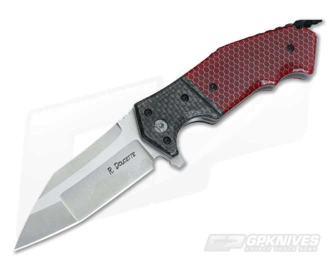 Randy Doucette Custom Artillery Flipper with a Red C-Tek™/ LS Carbon Fiber handle and a piercing CPM-20CV blade. This aggressive looking knife means business and is ready for action. It’s a great smaller-medium sized flipper from Randy. Brand new direct from maker.