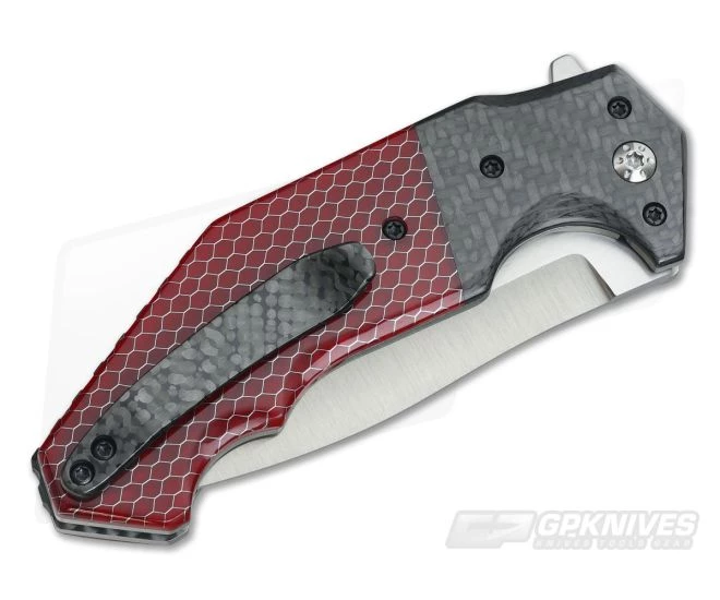 Randy Doucette Custom Interceptor Flipper with Red C-Tek, Carbon Fiber bolster and an M390 spear point blade. This well balanced blade is optimized for piercing with a single-edged, double-hollow ground recurve blade. Brand new direct from maker.