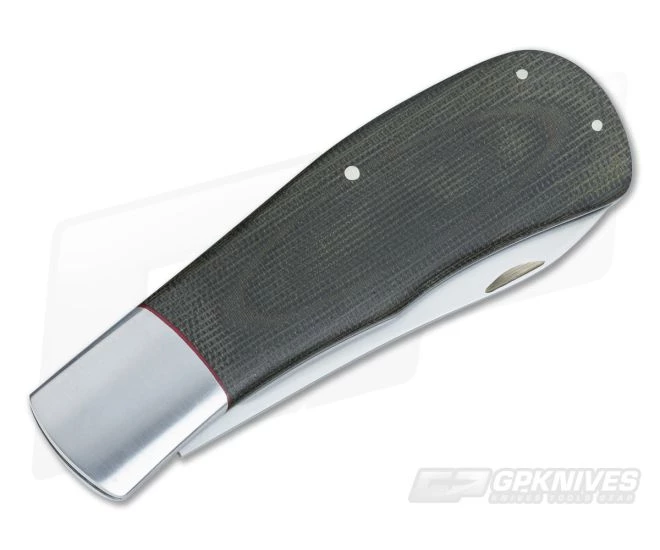 The Handle: A rugged OD green canvas micarta handle has been accented with vibrant red fiber liners all pinned to brushed stainless liners. The handle scales are very slightly contoured for a palm filling grip. Dovetailed primary bolster of brushed stainless steel.