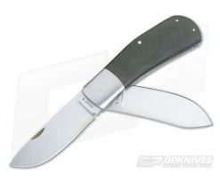 The Blades: Primary drop point blade with secondary skinner made from 154CM stainless steel with hand-rubbed satin finish. Nail nicks on both blades assist with purchase for opening. Very strong backsprings with pronounced half stops. Marked R. Cover on front side of primary and 154CM on secondary.