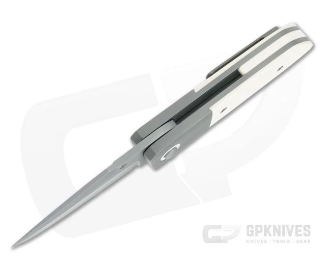 The Mark Roe Custom Hostile Intent is a clean and utilitarian tactical design that is well suited to everyday carry and use, offering premium aesthetics and performance. This is a robust, titanium liner lock flipper that doesn’t sacrifice function for style. This version has a harpoon swedge, blasted matte gray CPM-S30V stainless steel blade, Faux Ivory scales, spacer and pivot collars, titanium liners and matching bolsters.