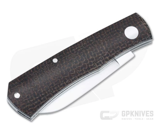 Handle: Stainless liners support contoured burlap Micarta covers for a solid and comfortable grip and plenty of visual appeal. The covers are attached with stainless pins and the liners are engine turned or jeweled for a truly custom feel. A solid stainless steel back spring protects the blade when closed and delivers snappy slip joint action for safe use. Includes a felt slip for storage and carry, nylon drawstring bag and signed Certificate of Authenticity.