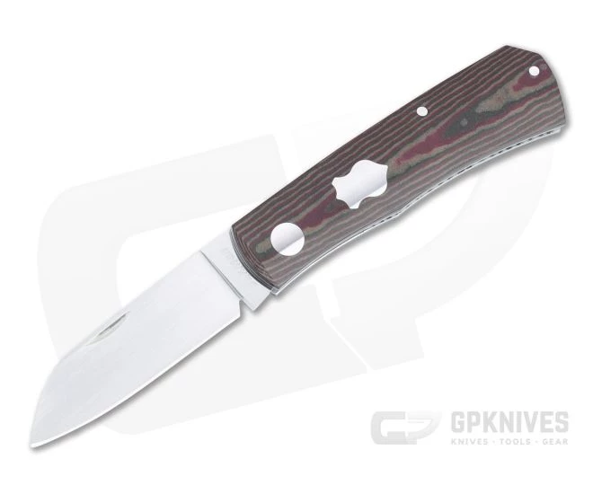 Custom maker Sakkie Steenkamp of Sakman Knives, South Africa, brings the modern traditional to life in his Rhino slip joint folder. A hand rubbed satin N690 modified Sheepsfoot blade pairs a traditional slip joint construction with contemporary lines and precision construction. This version comes with chocolate/brown/red Richlite covers and stainless steel shield inlay.