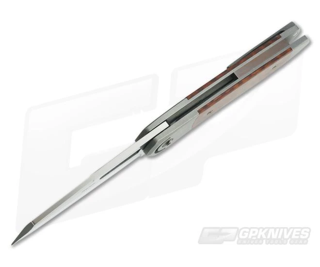 Handle: The titanium handle scales house a handsome Snakewood inserts that can be removed and exchanged for the included Lightening Strike Carbon Fiber Inlays as the mood takes you. The tumbled titanium frame forms a frame lock mechanism for solid lock up in all respects and a hardened steel lock face insert ensures smooth operation for the life of the knife. Ti Connector titanium pivot hardware and screws along with a bronze anodized titanium backspacer round out the construction.