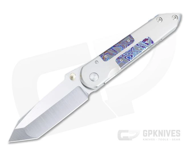 The Tanto #2 Front Flipper is a true custom knife. Sergey makes each piece without the use of a CNC or water jet machine doing all the work in his shop by hand. Every part of the process, from the heat treating of the blade to the manufacturing of parts, is done manually. The Tanto #2 Front Flipper has a two-tone satin finished CPM MagnaCut Tanto blade and hand rubbed satin titanium handles with black Timascus inlays.