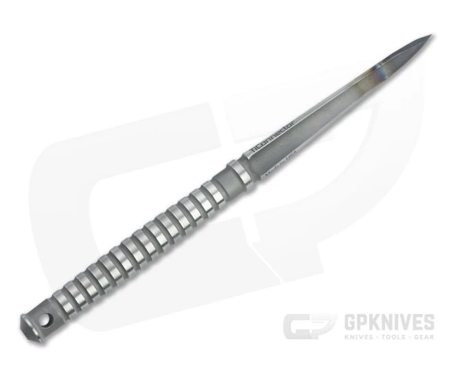 Milled from solid titanium, the TiConnector Ti-Spike is a simple tri-edge dagger with a full size, high traction groove milled handle for a solid and secure grip. The slim profile and lightweight make this ideal for discreet carry. The titanium is blasted gray with satin faces and includes a Kydex sheath for neck carry.