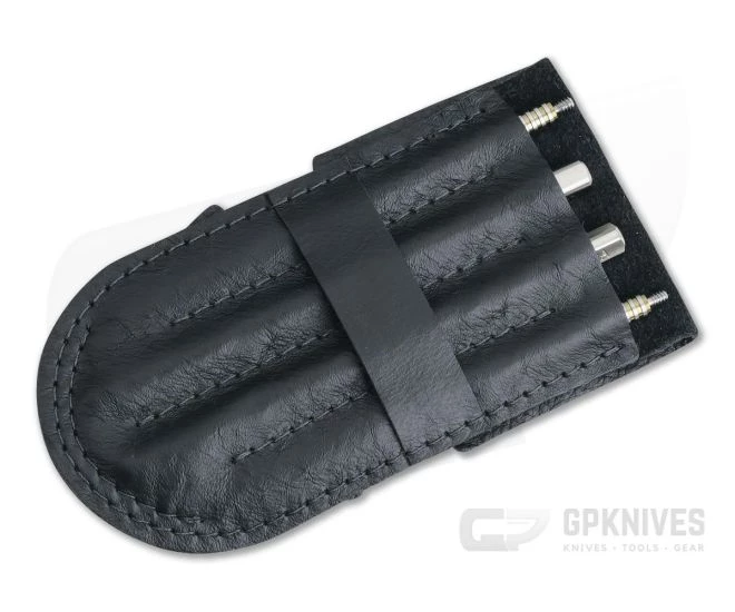 The precision machined threads make for fast and easy assembly/disassembly and they store in a finely crafted, 3″ x 6″ leather pouch.