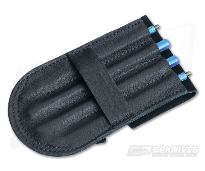 The precision machined threads make for fast and easy assembly/disassembly and they store in a finely crafted, 3″ x 6″ leather pouch.
