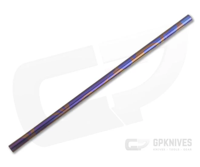 Created by custom knife maker Steve Kelly, this 3/8″ diameter straight, magnum drinking straw is made from Raw, 100% titanium with a Purple and Bronze Swirl anodization. Sized to fit most drinks well, these straws work great for any beverage you choose and thanks to the larger diameter these are perfect for milkshakes or other thick beverages. Eco-friendly, tasteless and odorless. Won’t leach chemicals into your drink. Easy to maintain with soapy water and includes straw brush for extra cleaning.