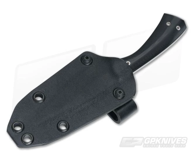 This Bug-Out ships in a black Kydex sheath with belt clasp for horizontal carry. Toss one in your bag!