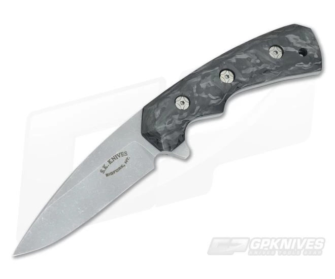 New Custom C-4 Fighter direct from maker Steven Kelly with a full tang of dark washed CPM-154 dressed in Marbled Carbon Fiber. The C-4 would make a comfortable backup carry or pristine collector’s piece.