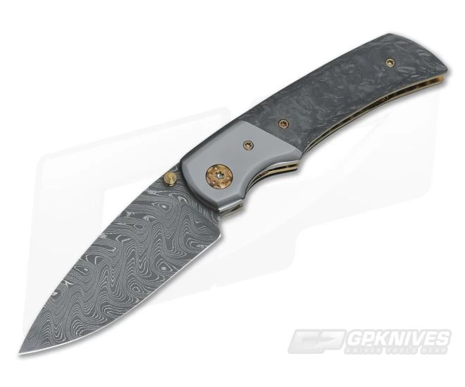 The Gulo folder from custom maker Steven Kelly out of Bigfork, Montana is for those who like to carry in style. The model is a tactical design with gentleman’s outer wear. It is suited with lightweight Marble Carbon Fiber and Chad Nichols stainless damascus.