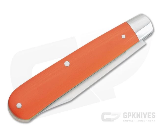 Todd Davison provides custom, traditional slip joint pocket knives that are truly handmade and one of a kind. Having produced over 1600 slip joint knives, Davison utilizes premium materials and offers exceptional quality and attention to detail in a timeless, traditional design. #1926 comes with hand rubbed satin, CPM154 clip point blade, liners and bolsters and Orange G10 covers with green liners.