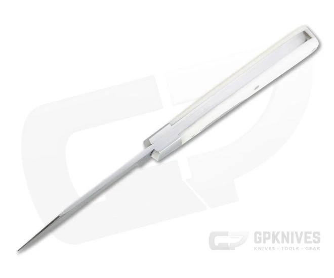 Handle: Handsome and stylish Smooth White Bone covers are precision fit to the stainless steel liners and bolsters. Bolsters and liners are mirror polished with file work on the inside of the back spring for a truly custom feel. Stainless pins are used to secure the covers and the display side has a stainless ‘Keyhole’ shield for a timeless feel. The back spring is smooth and solid with half-stop action and sits flush in all three positions.