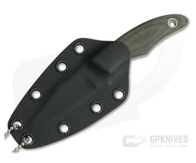 Sheath: ships in a custom-fit black Kydex sheath with ball chain for neck carry.