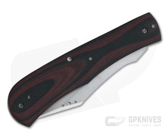 Handle: Offering a blend of modern and traditional design the handle is comprised of a steel back spring, blasted titanium liners and matte finished Red and Black G10 scales all held together with titanium Torx hardware. The slip joint operation has a solid half stop operation for safety. The large, classic handle profile is comfortable during periods of extended use while maintaining a slim, easy to carry profile.