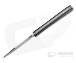 Blade: Made from premium AEB-L stainless steel the Bowie-like clip point blade has a rugged stonewashed finish and a fine, hollow ground edge. The slip joint operation has a solid half stop with good walk and talk. Three milled holes in the blade are substituted for a nail nick for opening, adding traction while keeping a clean look.